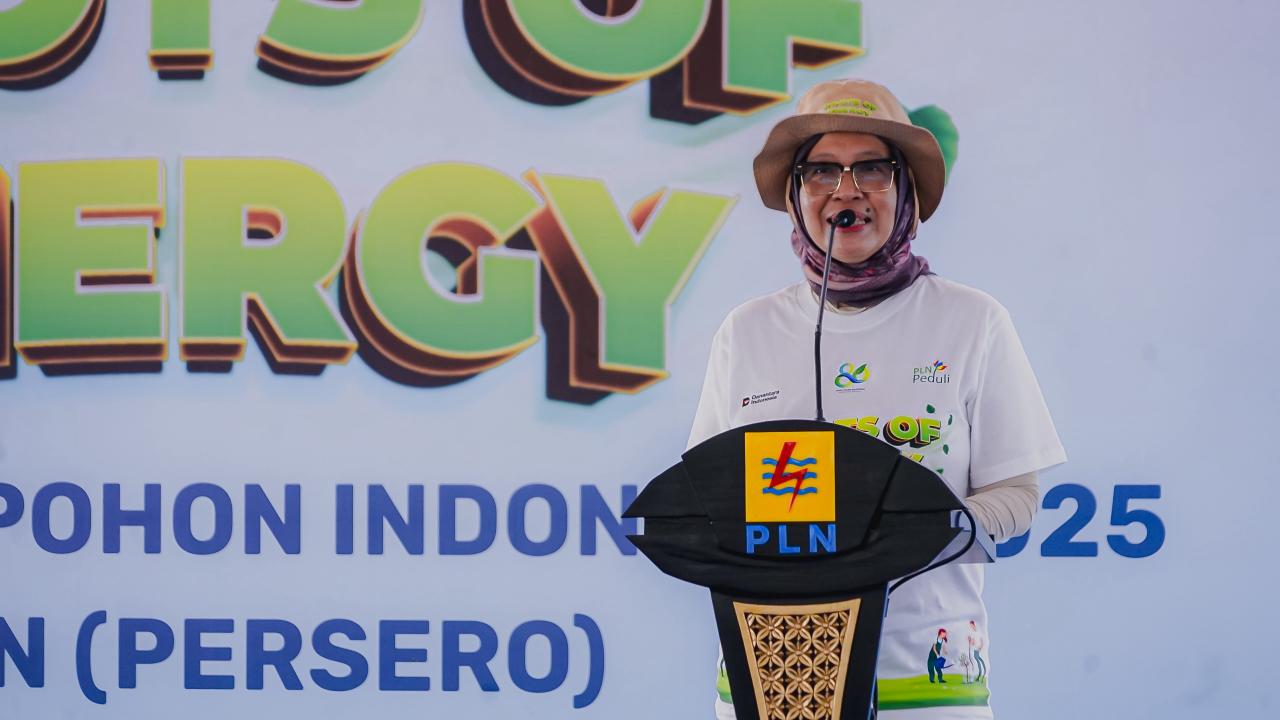 General Manager PLN UIW NTB, Sri Heny Purwanti, memberikan sambutan dalam kegiatan Roots of Energy pada peringatan Hari Menanam Pohon Indonesia 2025. (Dok. PLN)