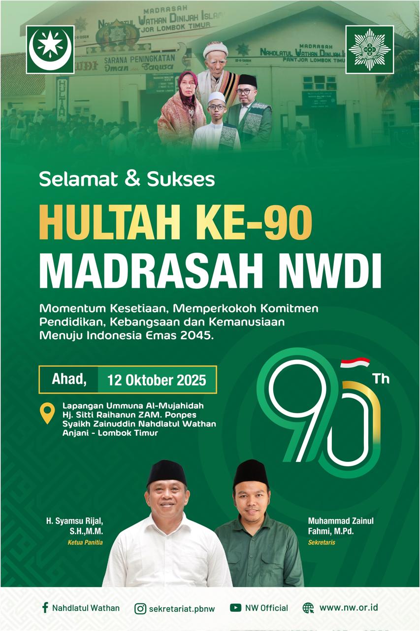 Mataram – Semarak perayaan Hultah Akbar ke-90 Madrasah NWDI tahun 2025 akan semakin meriah dengan digelarnya Jalan Sehat yang berhadiah utama lima paket umrah. Kegiatan ini akan berlangsung pada Rabu, 8 Oktober 2025, dengan rute start dari Kantor Pengurus Besar Nahdlatul Wathan (PBNW) di Jalan Pejanggik No.17 Kota Mataram, melewati Jalan Udayana, dan finish di eks Bandara Selaparang.