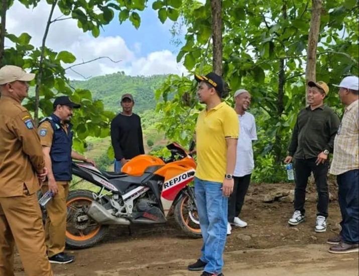 Ketua DPRD Lombok Barat dan Ketua Komisi III DPRD Lombok Barat meninjau langsung proyek Jalan Lendang Re–Menjut di Sekotong, di tengah sorotan keterbatasan waktu pelaksanaan. (Facebook/M. Burham)
